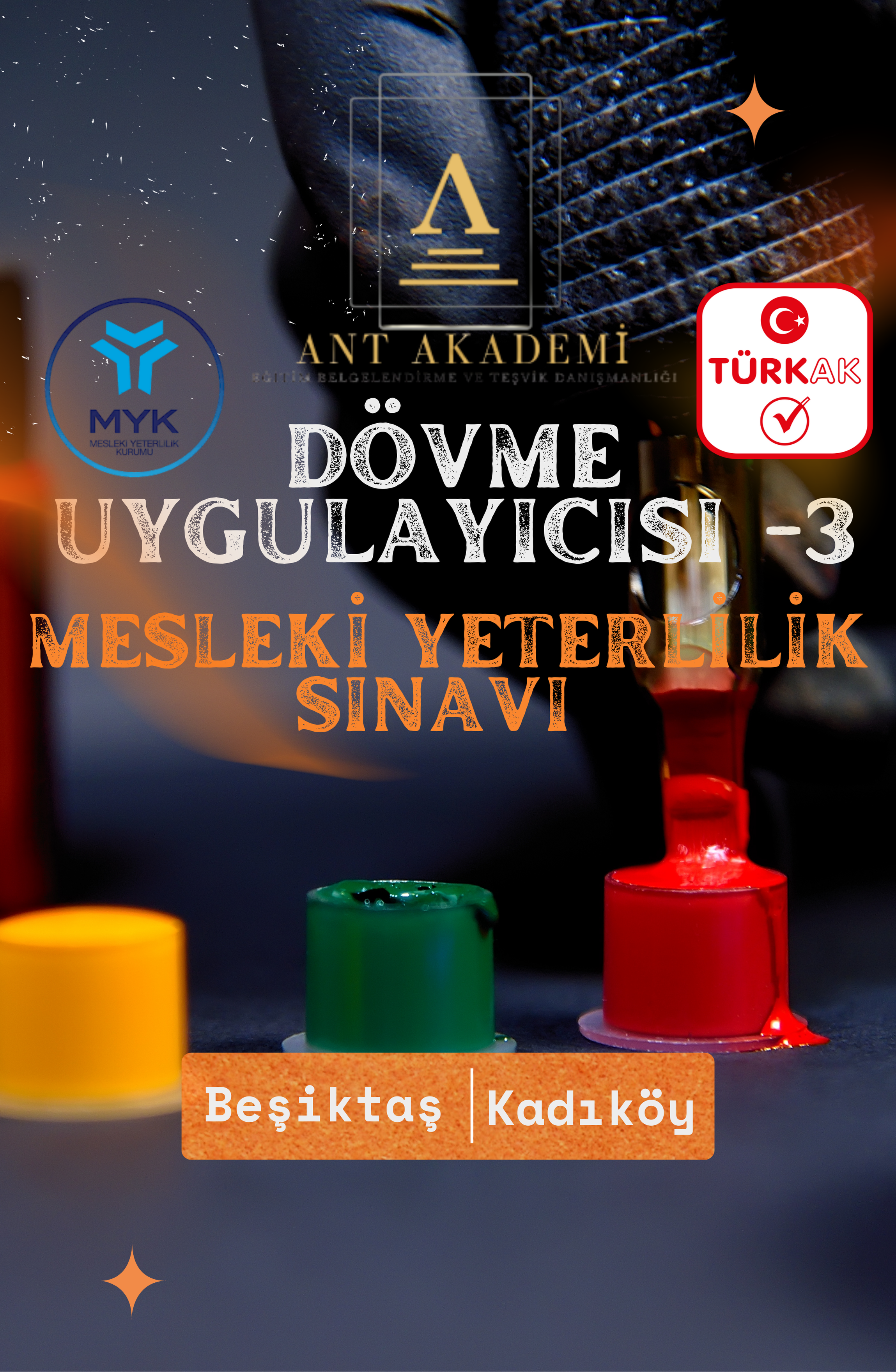 Ant Akademi Eğitim ve Belgelendirmenin düzenlemiş olduğu Dövme Uygulayıcısı Seviye-3 Mesleki yeterlilik sınavı için Başvurular tamamlanmıştır. bir sonraki sınav için randevu alabilirsiniz.